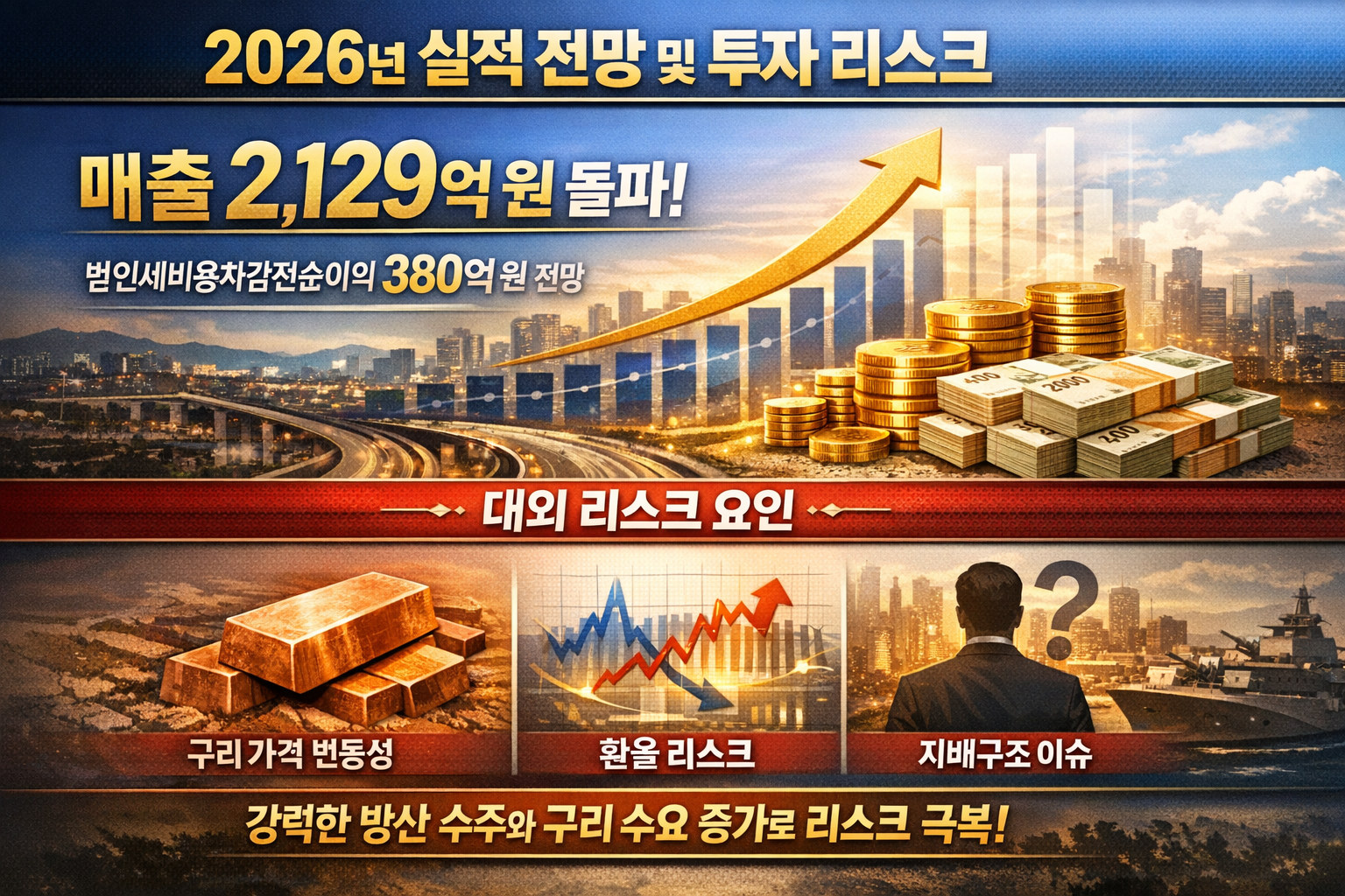 물론 리스크도 존재합니다. LME 구리 가격의 급격한 변동성이나 환율 하락은 수출 비중이 높은 구조상 이익에 부정적인 영향을 줄 수 있습니다. 또한, 오너 3세의 경영 승계 과정에서 발생할 수 있는 지배구조 이슈나 외국인 투자 제한 요건 등은 투자 전 반드시 체크해야 할 항목입니다. 그러나 강력한 방산 수주 잔고와 구리의 구조적 수요 증가라는 큰 흐름이 이러한 리스크를 충분히 상쇄할 수 있을 것으로 보입니다.