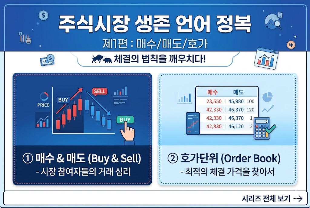 주식 앱(MTS)을 처음 열었을 때 마주하는 수많은 숫자와 빨강, 파랑의 움직임은 마치 낯선 외국어처럼 느껴질 수 있습니다. 하지만 이 복잡한 화면의 본질은 의외로 간단합니다. 바로 '팔려는 사람'과 '사려는 사람'이 실시간으로 가격을 제안하며 벌이는 거대한 흥정이죠. 우리가 시장에서 물건값을 깎거나 품질을 따지듯, 주식 시장에서도 '호가'라는 이름으로 매초 수천 건의 심리전이 벌어집니다. 이 메커니즘을 제대로 이해하지 못하면 남들보다 비싼 가격에 주식을 사거나, 정작 팔아야 할 때 기회를 놓치는 실수를 범하게 됩니다. 오늘 제1편에서는 주식 거래의 가장 기초이자 생존을 위한 필수 지식인 매매와 호가의 원리를 완벽하게 파헤쳐, 여러분이 시장의 대화에 당당히 참여할 수 있도록 도와드리겠습니다.